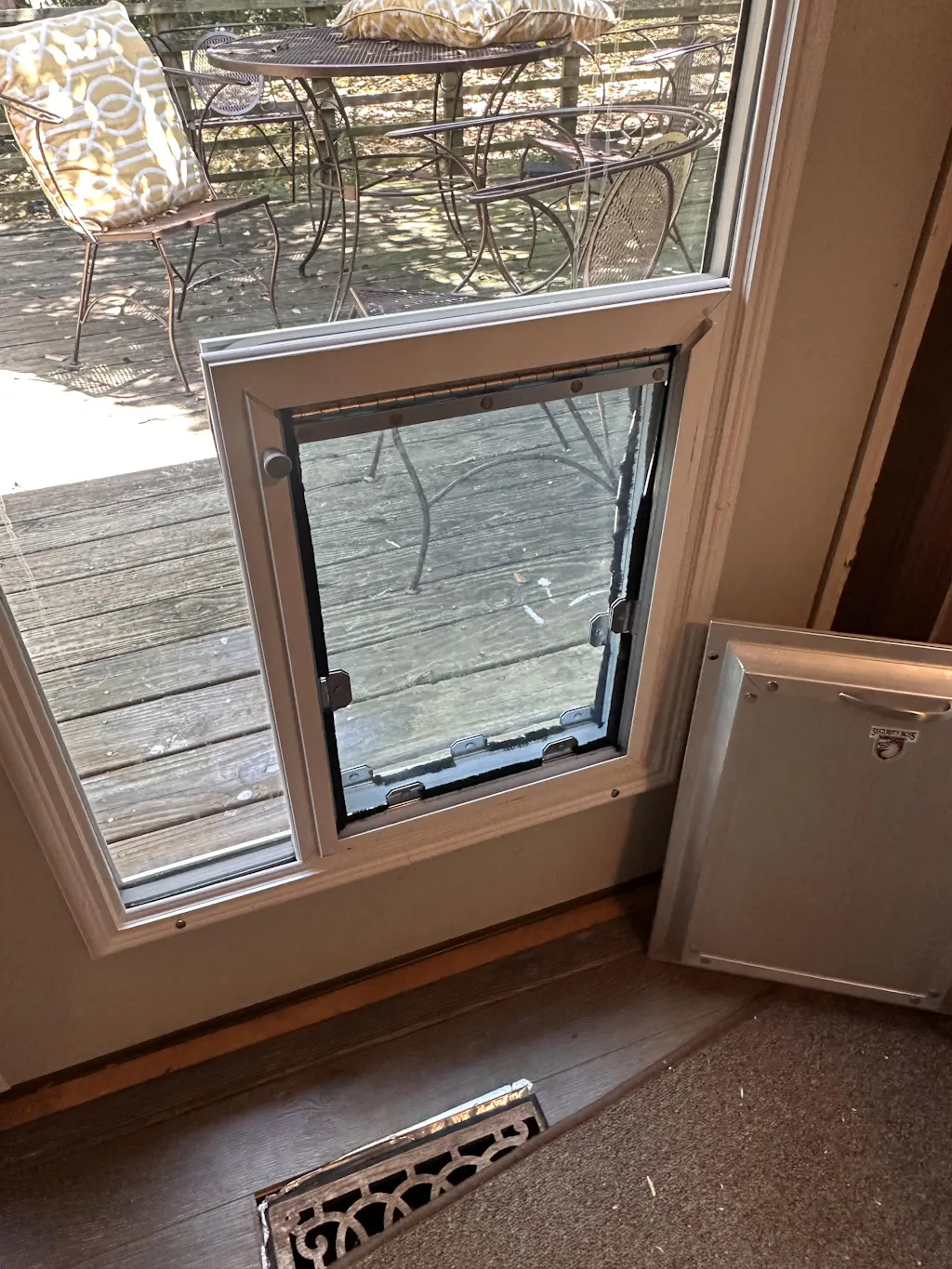 3) The packing tape used to pack this window insert/dog door left huge amounts of Stickum on the plastic dog doors! It took acetone to get it off but even then, it left enough Stickum on the doors that the dogs hair gets stuck in it after going in and out. This not only makes it difficult for the dog to use the door but also leaves a film of hazy, hairy Stickum on the door. This along with the dog’s hair stuck to the door is disgusting! What is amazing is that the haze still remains but the acetone removed some of the blue tinting on the door. You should use quality packing tape that DOES NOT LEAVE STICKY RESIDUE EVERYWHERE!